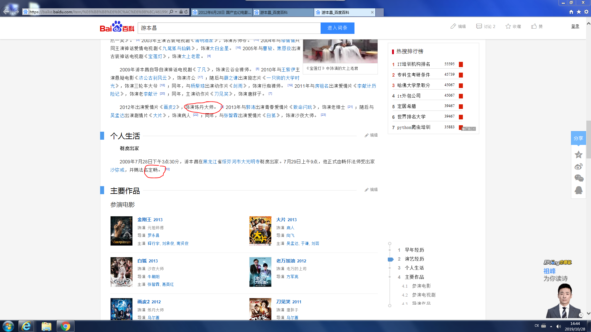 6月28日是小王的生日,他是中国人民公安大学2008年入学的本科生。在大四这年,为了庆祝生日,他和朋友们一起看了一场刚好在生日这天上映的国产玄幻电影。在这场电影中,饰演“炼丹大师”角色的演员曾经出家,请问他当时的法号是什么?(附截图)