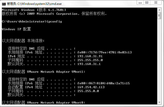 答:本机IP地址为192.168.31.91,子网掩码为255.255.255.0。