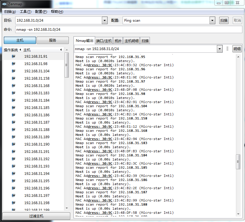请查询本机的IP地址和子网掩码,并在局域网中扫描本网段内的所有存活主机(附搜索截图)