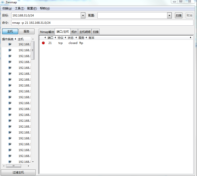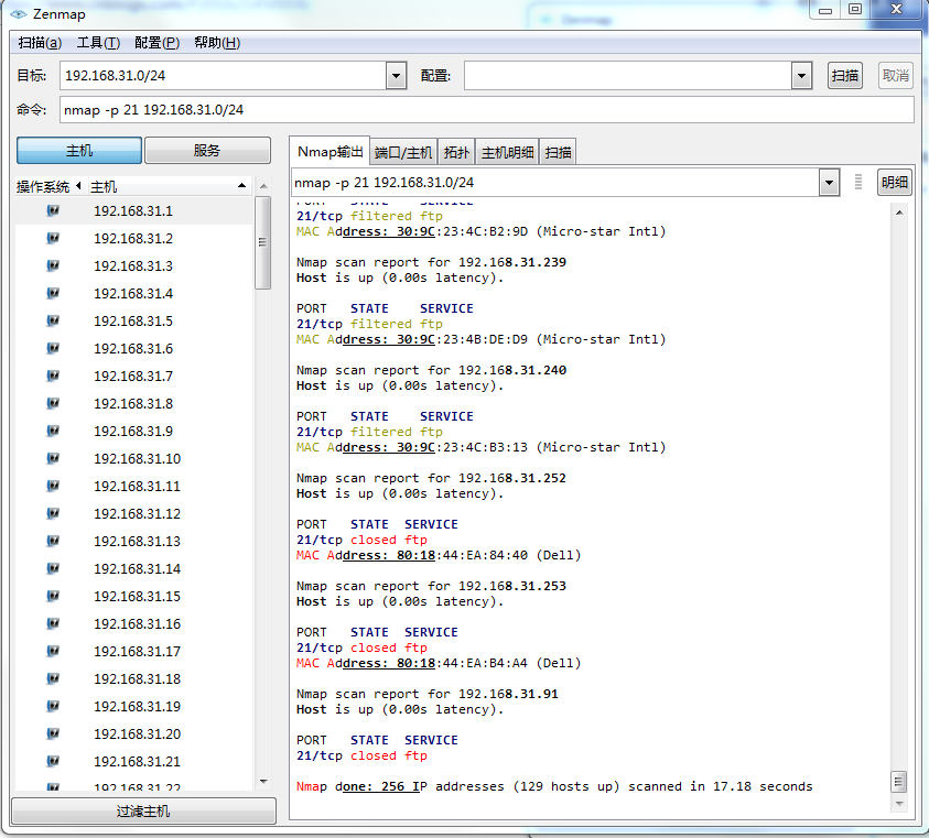 在实验楼上网的局域网内,请扫描出来,哪些机器开启了ftp服务,哪些机器开启了远程桌面连接服务,并附截图证明。