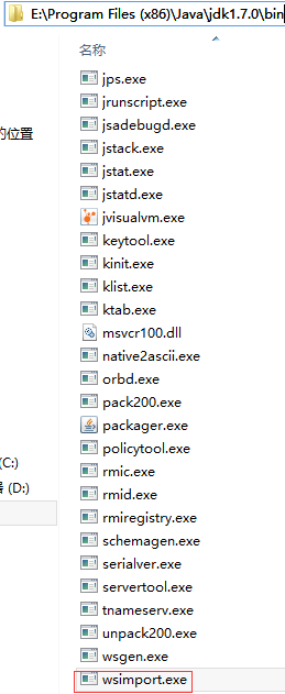 1、借助jdk的wsimort.exe工具生成客户端代码,wsimort.exe工具位于Jdk的bin目录下,如下图所示: