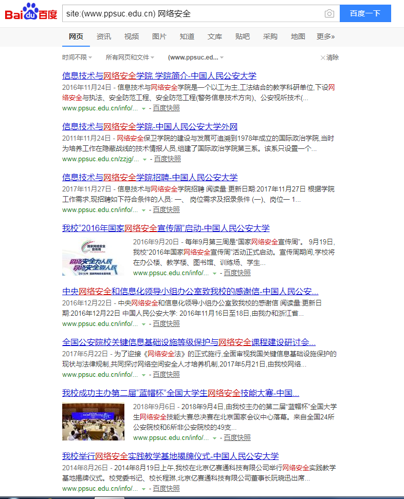用百度或google搜索www.ppsuc.edu.cn中所有包含“网络安全”的网页。(附截图)