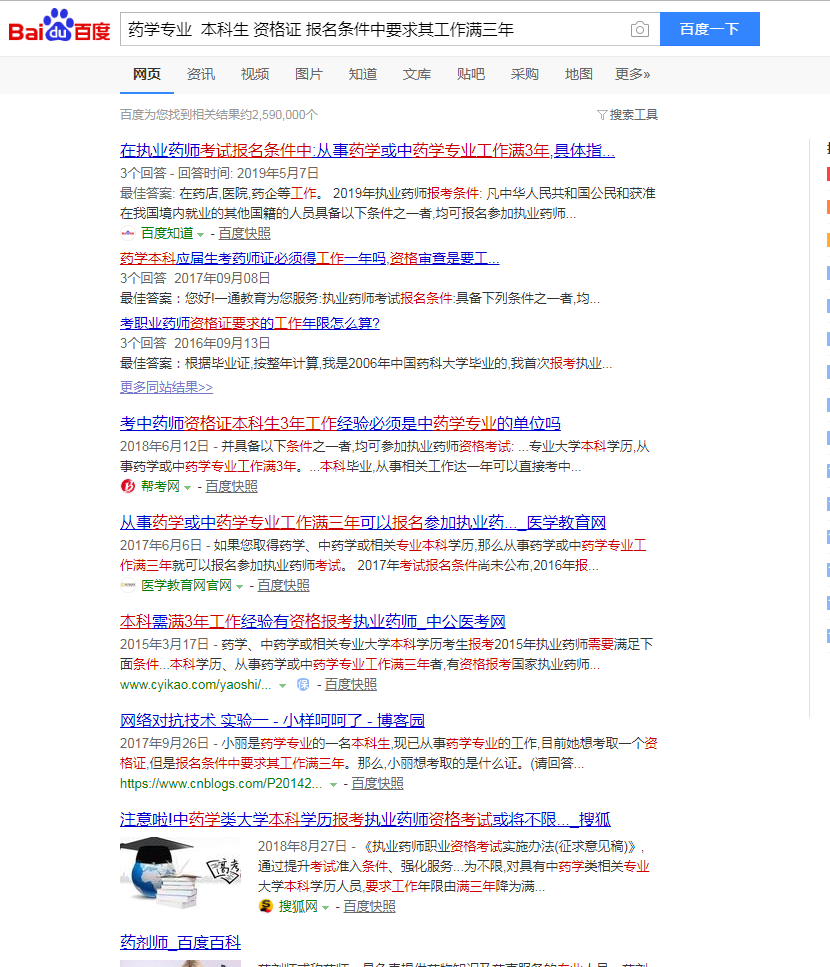 小丽是药学专业的一名本科生,现已从事药学专业的工作,目前她想考取一个资格证,但是报名条件中要求其工作满三年。那么,小丽想考取的是什么证。(请回答并附截图证明。)