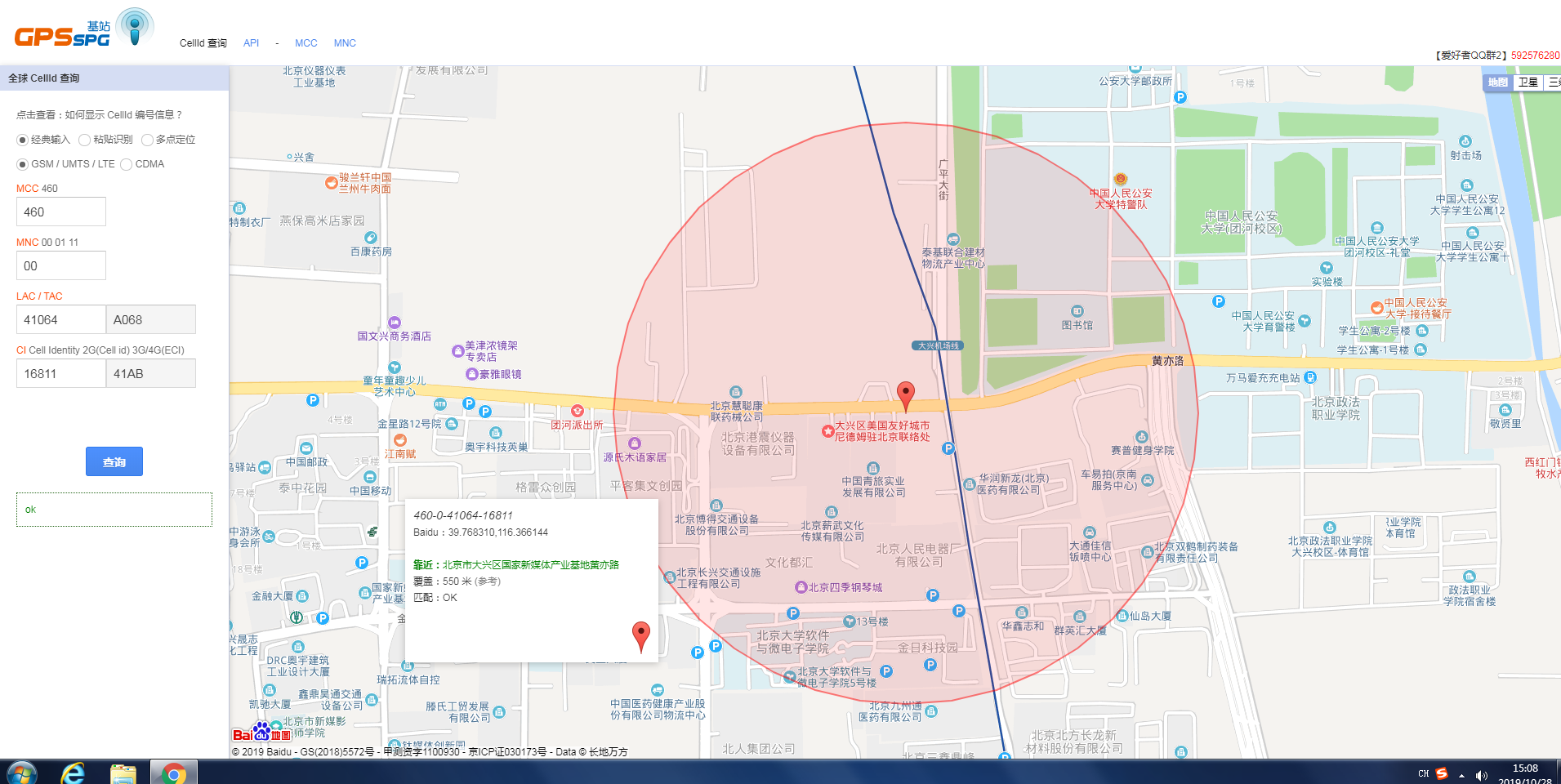 LAC,CID用于基站定位,通过全球 CellId 查询网站可知此人靠近北京市大兴区国家新媒体产业基地黄亦路,可能在中国人民公安大学