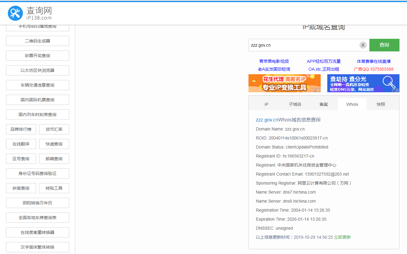 获取www.zzz.gov.cn域名注册时,注册人的邮箱是(附截图)
