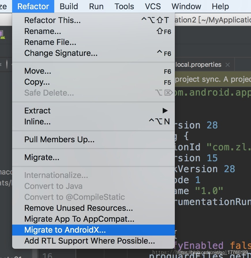 如果一个一个去替换当然很麻烦了,所以在Android Studio 3.2 Canary中添加了一键迁移的功能Refactor -> Migrate to AndroidX。