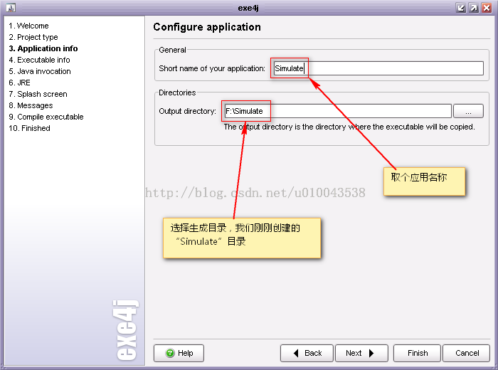 在新窗口中,为我们的应用取个名称,之后选择exe生成目录(我的F:\Simulate),点击“Next”