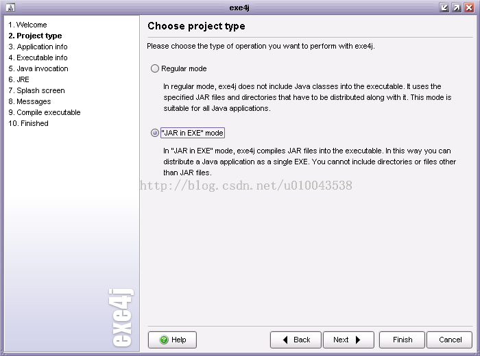 在弹出窗口,选择“JAR in EXE mode”,点击“Next”