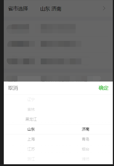 1 <template> 2 <view> 3 <div class="item-content apply-city"> 4 <div class="item-title label">省市选择</div> 5 <picker 6 class="item-input city-picker" 7 mode="multiSelector" 8 @change="bindMultiPickerChange" 9 @columnchange="bindMultiPickerColumnChange" 10 @click="selectCity" 11 :value="multiIndex" 12 :range="multiArray" 13 > 14 <input disabled="true" placeholder="请选择城市" :value="citysName" /> 15 </picker> 16 <a href="#"><i class="icon-right-no-bg"></i></a> 17 </div> 18 </view> 19 </template>