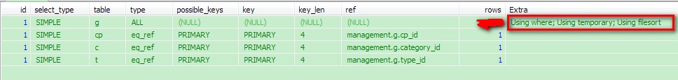2)在JOIN查询中,ORDER BY或者GROUP BY使用了不是第一个表的列 例如:SELECT * from TableA, TableB ORDER BY TableA.price GROUP by TableB.name