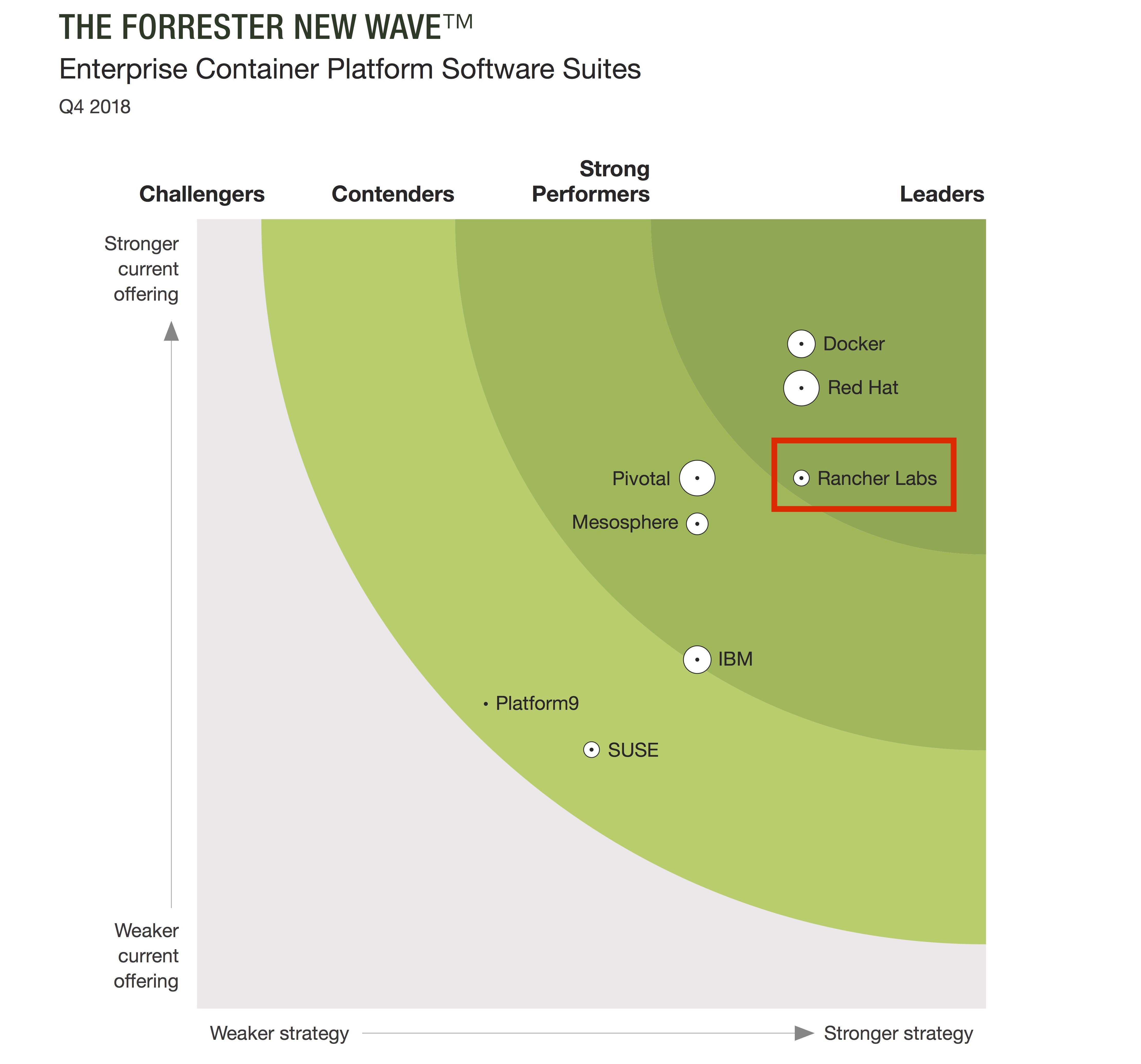 全球著名的调研机构Forrester Research近日发布了《The Forrester New Wave: Enterprise Container Platform Software Suites, Q4 2018》报告,对企业级容器平台(ECP)市场进行全面评估,希望可以为有容器需求的企业提供一份权威参考,综合排出了八大最领先的企业容器平台提供商,按照排名依次是:Docker,Red Hat,Rancher Labs,Pivotal,Mesosphere,IBM,SUSE,Platform 9。