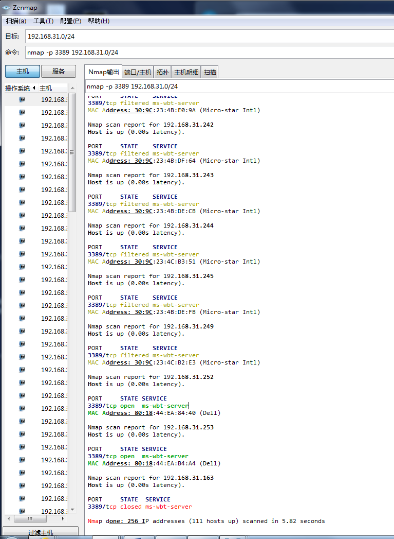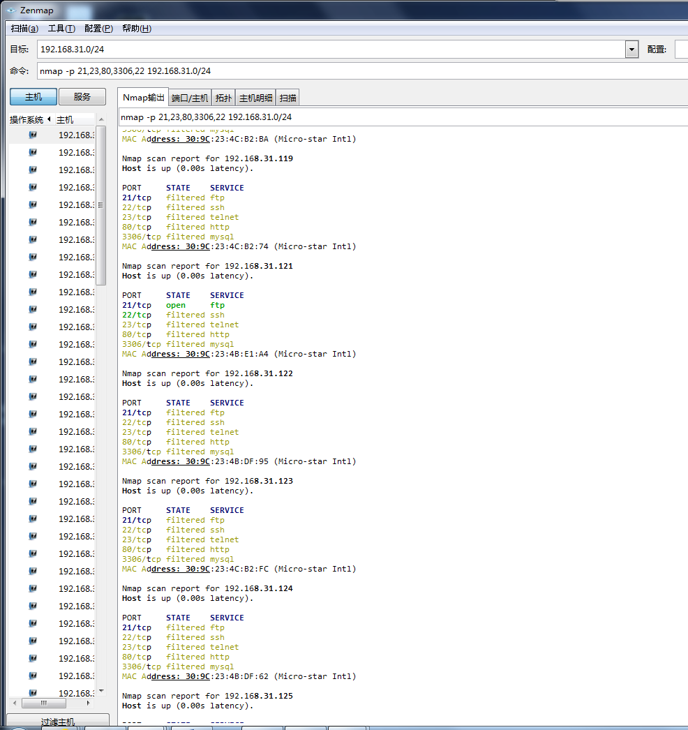 在实验楼上网的局域网内,请扫描出来,哪些机器开启了ftp服务,哪些机器开启了远程桌面连接服务,并附截图证明。