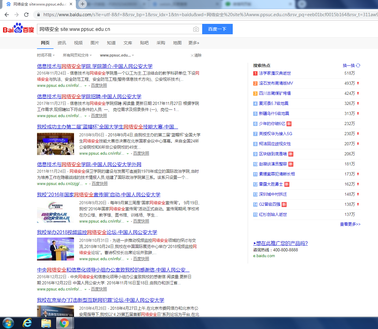 用百度或google搜索www.ppsuc.edu.cn中所有包含“网络安全”的网页。(附截图)