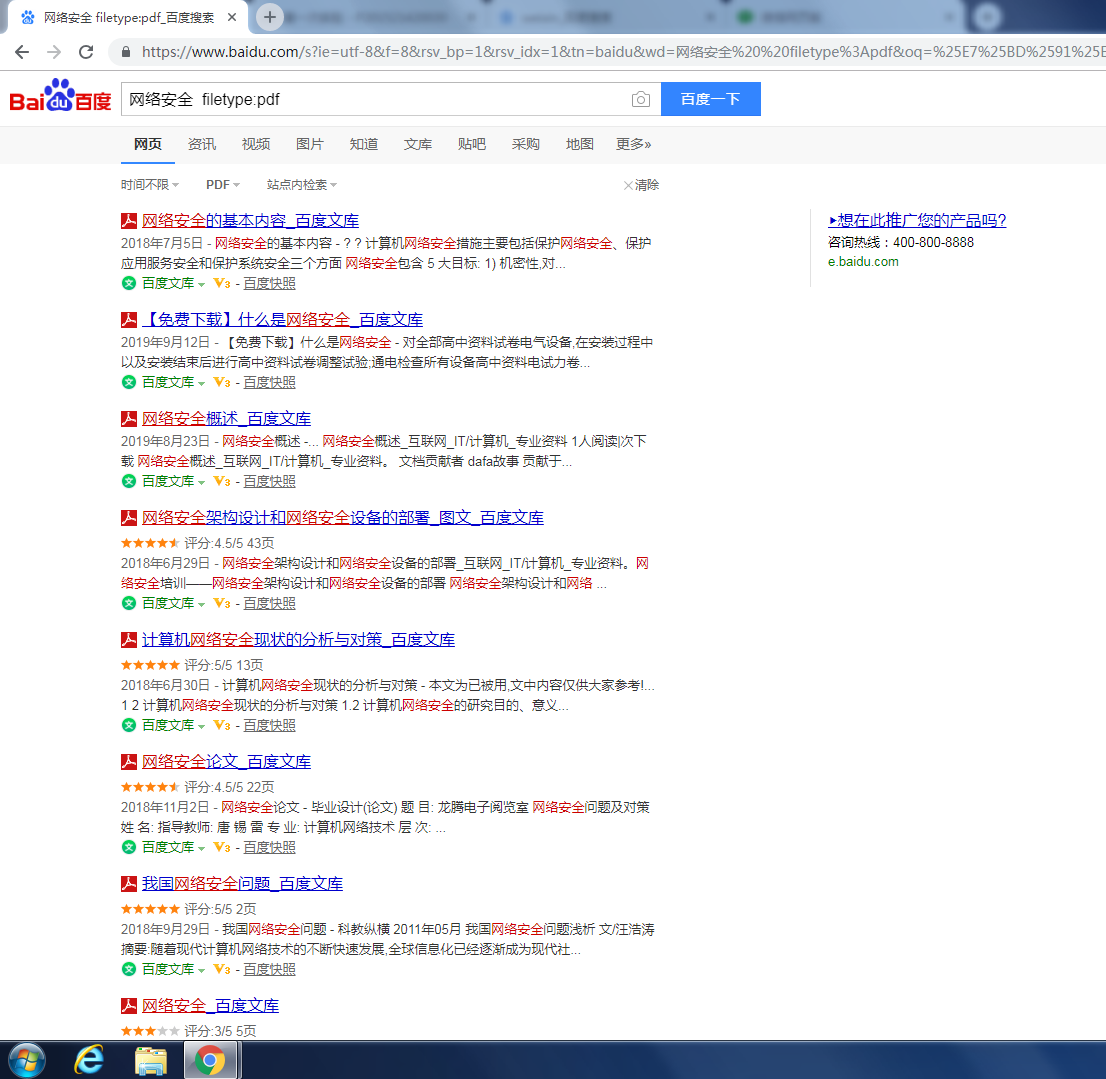 用百度或google搜索所有包含“网络安全”的pdf文档(附截图)