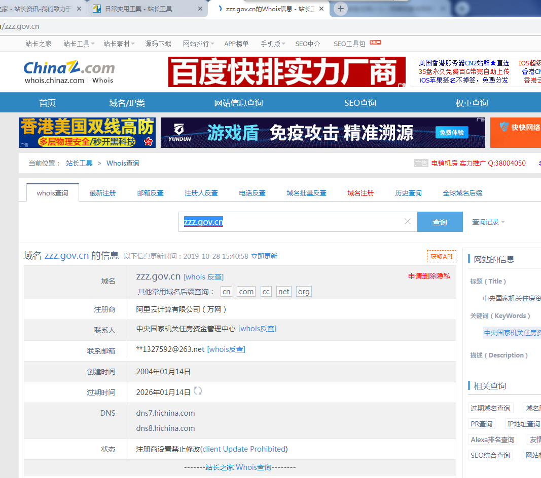 获取www.zzz.gov.cn域名注册时,注册人的邮箱是(附截图)
