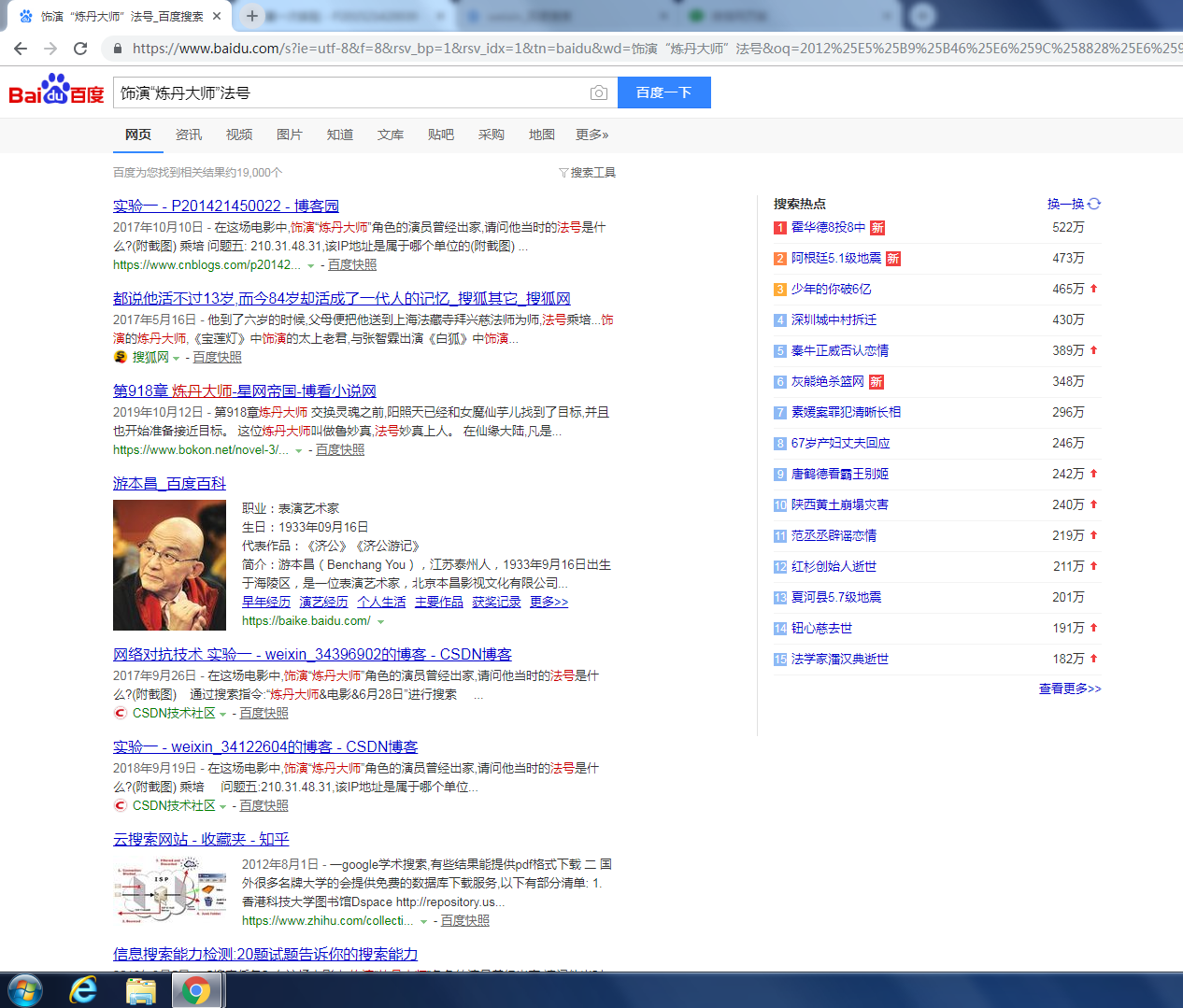 第一次使用 全部的关键词信息 来搜索并没有直接得到我需要的结果 得用两不误,先打开画皮主页,找到主演信息,再通过主演信息,去寻找法号;但是第二次我换了关键词,只使用了 饰演“炼丹大师”法号 就能直接在一篇网页里寻找出 法号等信息,我认为要先定位要搜索的内容 ,先想好可能会直接出现你需要信息的文档应该是怎样写的,这样能节省时间,一步到位。法号:乘培