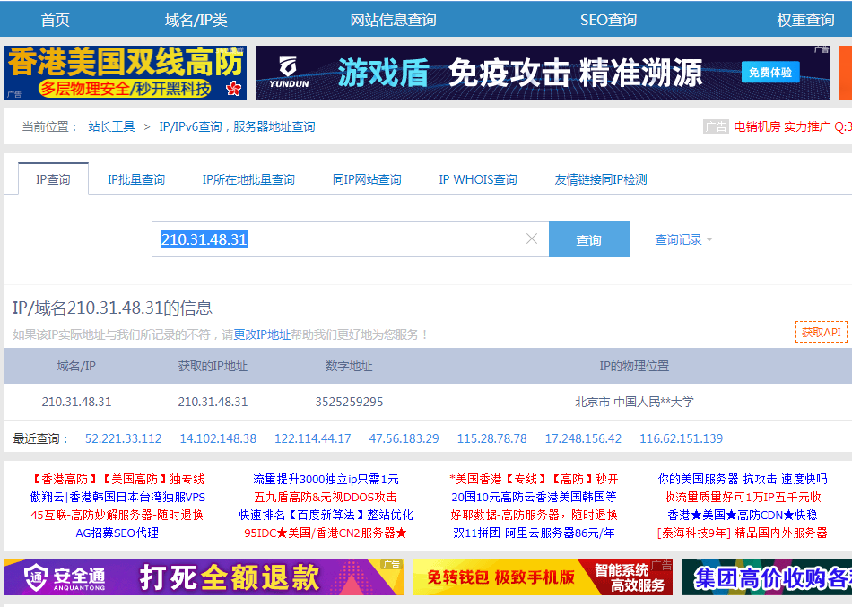 210.31.48.31,该IP地址是属于哪个单位的(附截图)