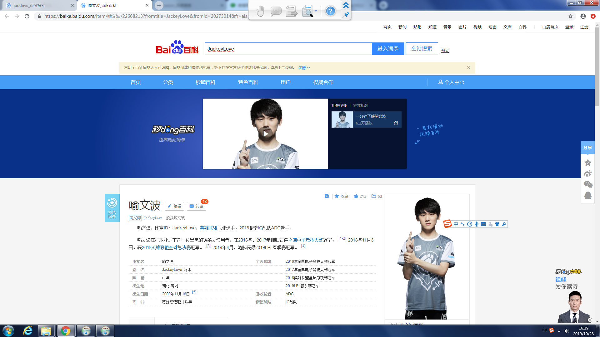 例如搜索百度百科“Jacklove”出现以下的相关信息。