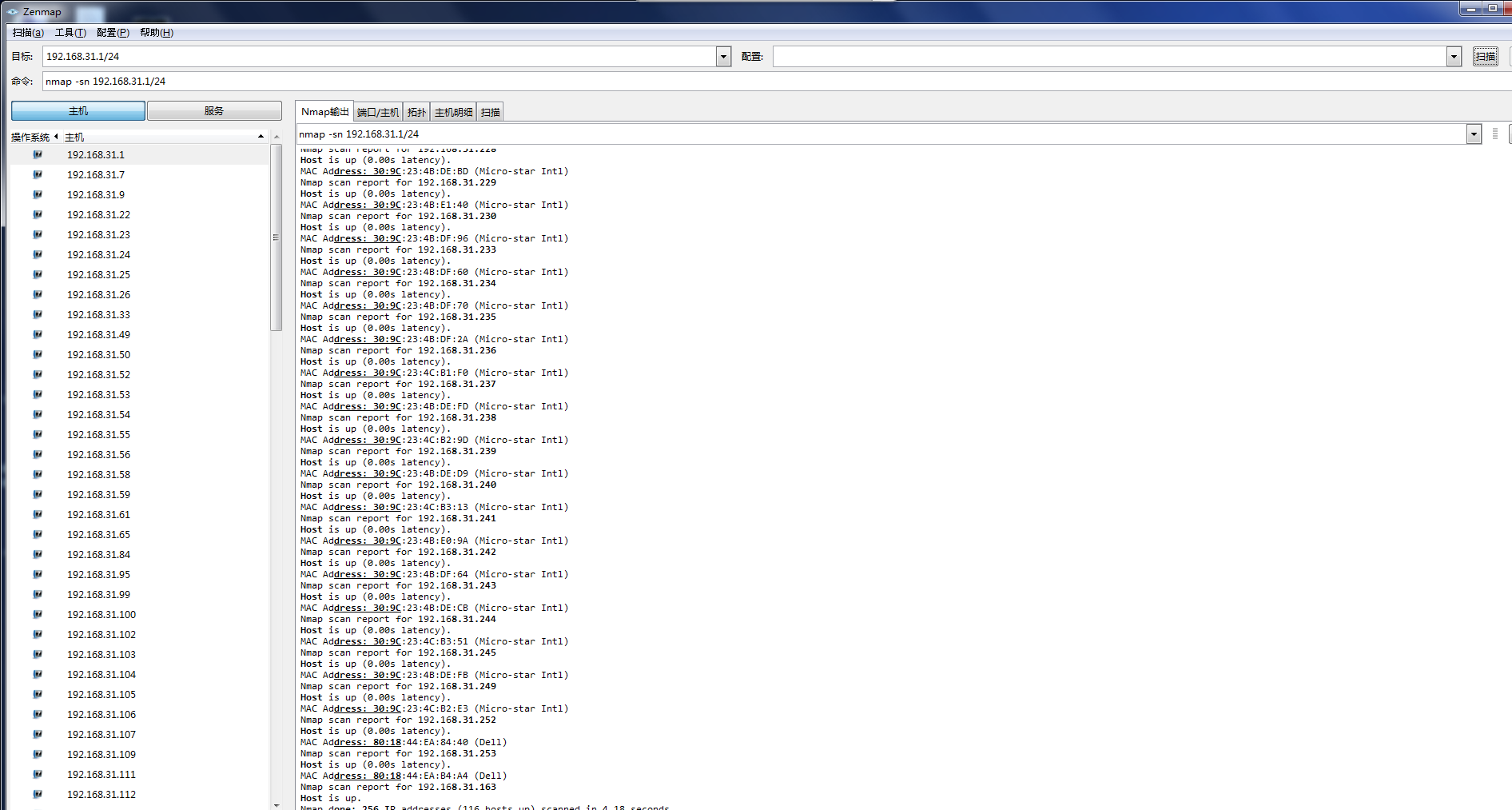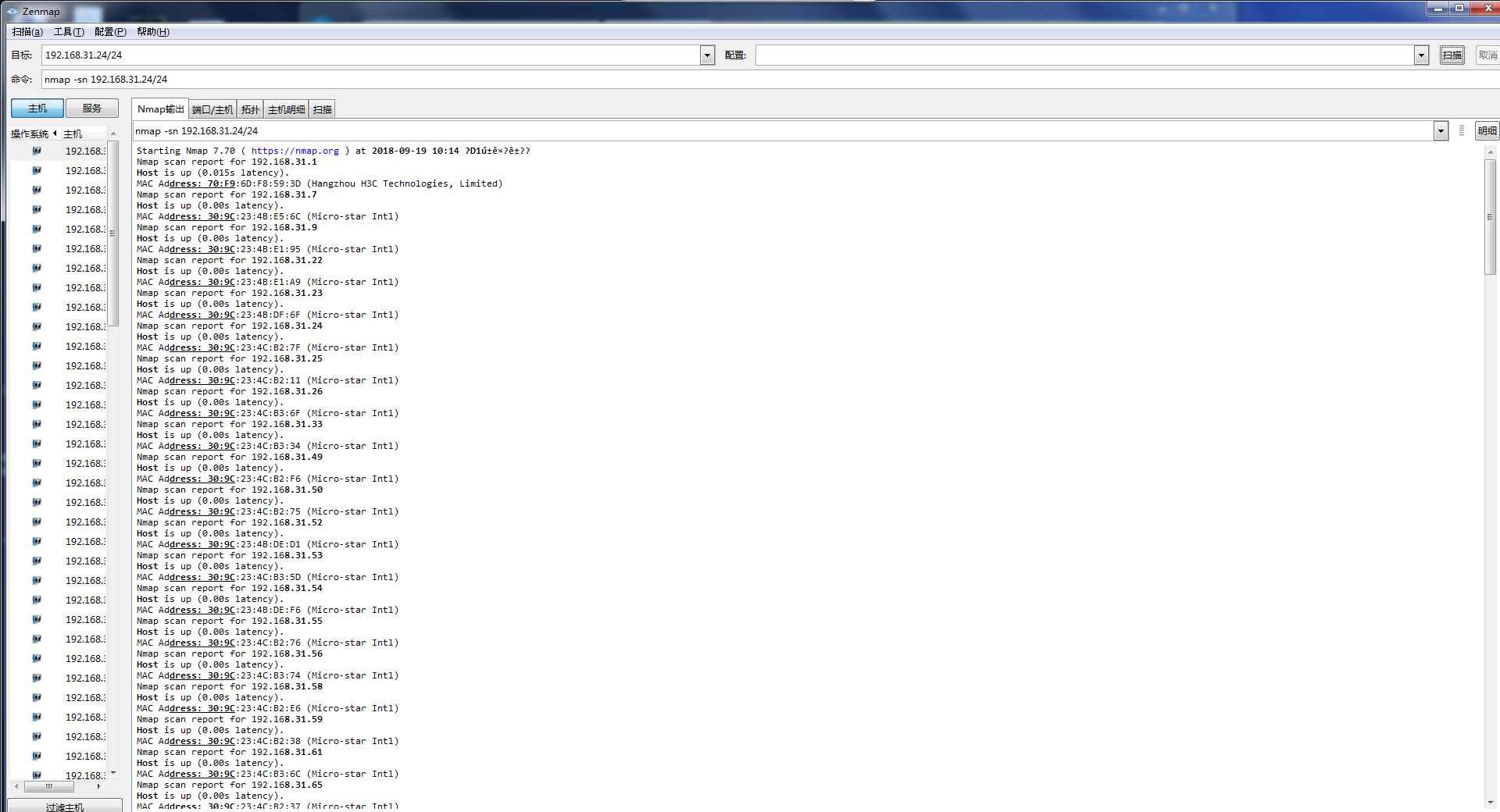请查询本机的IP地址和子网掩码,并在局域网中扫描本网段内的所有存活主机(附搜索截图)