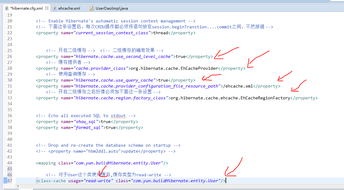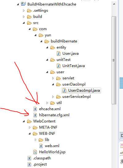 将mysql...jdbc.jar、hibernate需要的jar、上面描述的ehcache需要的jar导入到项目中。