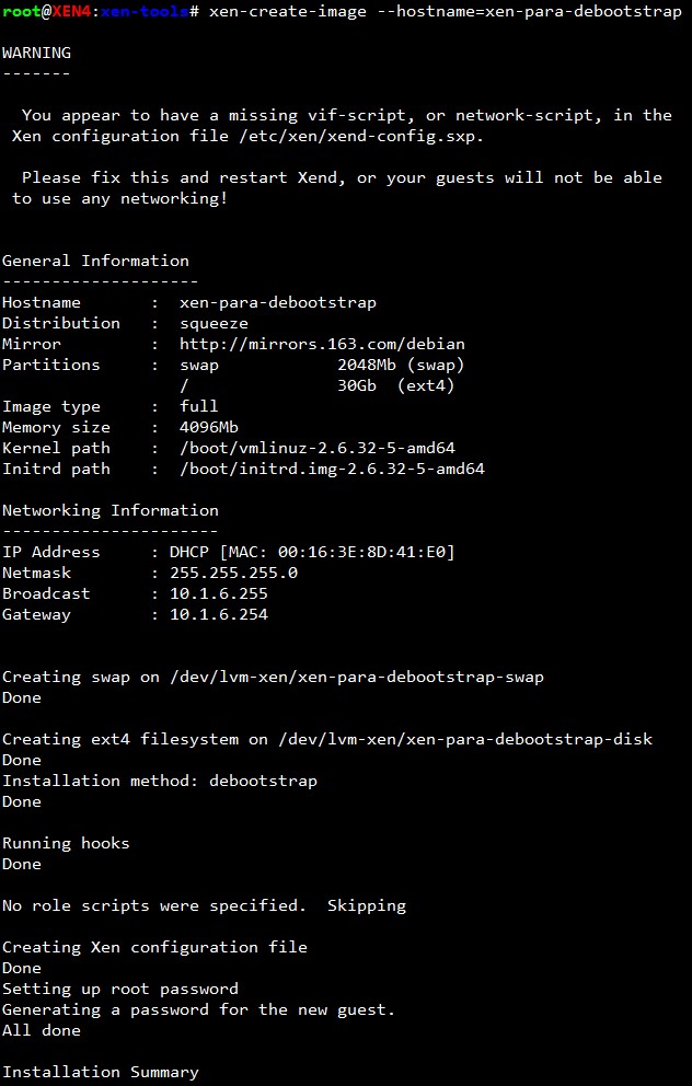 在上面xen-create-image命令执行完毕后,会显示安装进行到每一步的提示,但是并不能查看整个详细的安装过程,这时查看/var/log/xen-tools/xen-para-debootstrap.log文件,可以看到整个动态安装过程。
