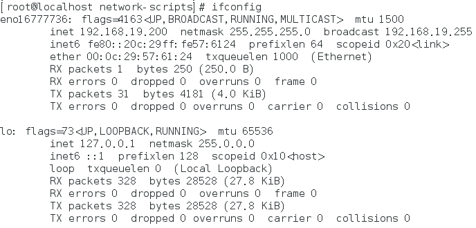 7、使用ifconfig查看网卡信息,如果未改变,使用systemctl restart network重新启动网卡。