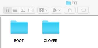 打开,里边是一个EFI文件夹,接着打开,里边就是引导文件,这时候已经存在的是Boot文件夹(共用)、Apple文件夹(苹果的引导)、Microsoft文件夹(Windows10用的),那么把咱们刚才的macOS启动盘里的clover文件夹直接复制到这个目录里,就可以了