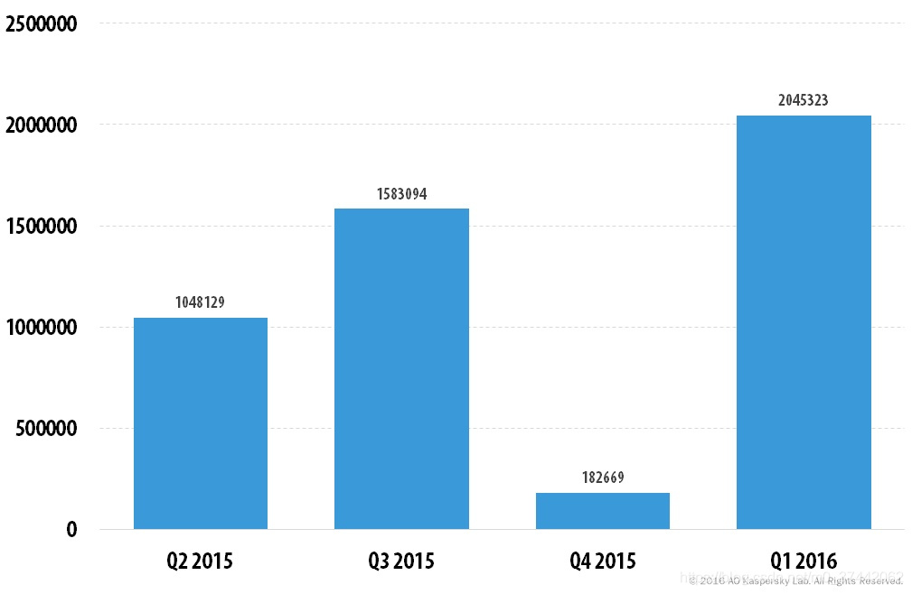 不过,2016年第一季度最猖狂的勒索是Locky,卡巴斯基称作Trojan-Ransom.Win32.Locky。