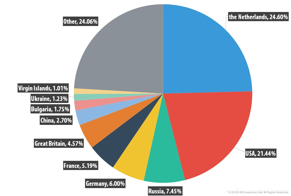 在2016年第一季度,卡巴斯基检测到并成功防御了228,420,754 次恶意攻击,这些攻击遍布世界上195个国家。76%被检测到的攻击来自10个国家。