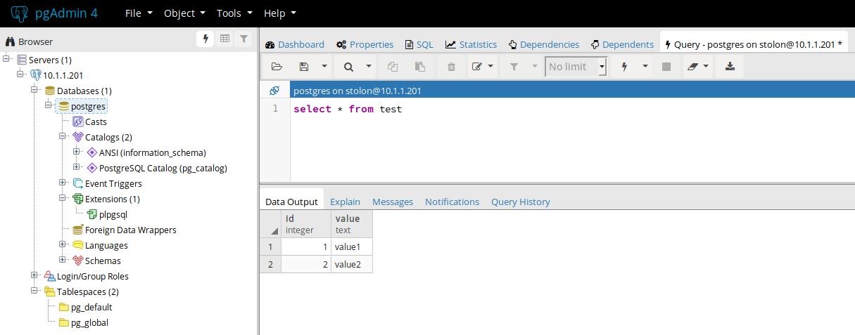 在管理页面添加之前在《Kubernetes快速部署高可用PostgreSQL》设置的服务器10.1.1.201,端口30900,数据库postgres。