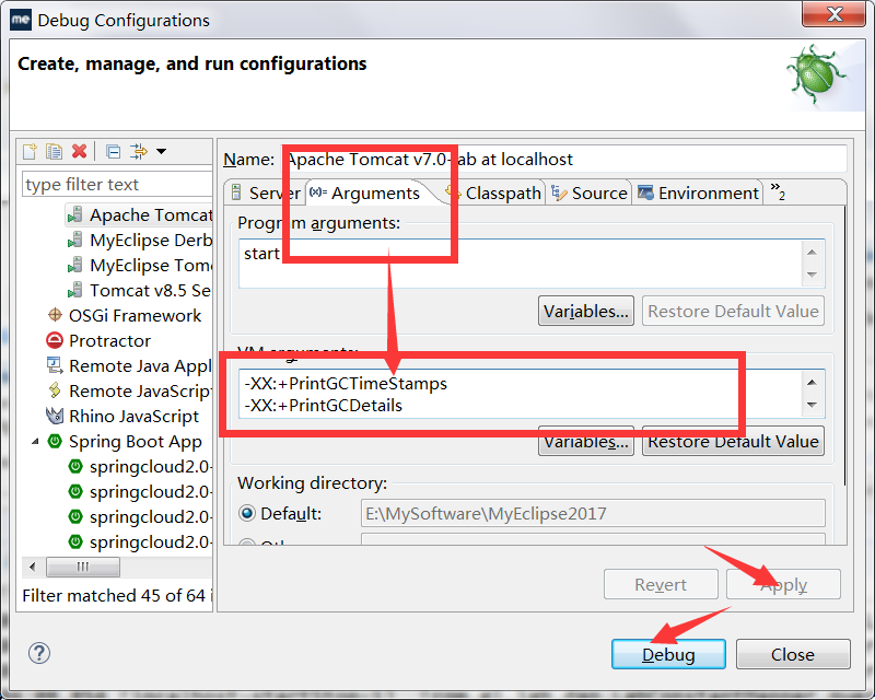 点击Apply,最后点击Debug。(可在自己选定目录中生成gc.log,在这里我选择的是G盘目录下)