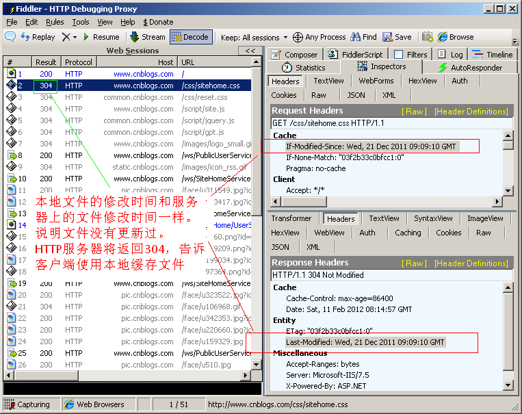 例如打开博客园首页, 发现很多 Response 的status code 都是304