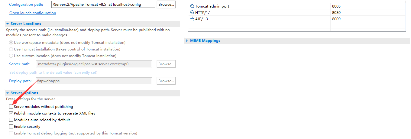 在我准备删除项目,重新部署的时候。又看到了一个评论,说是让在Tomcat的设置里把Server modules without publishing左边对勾去掉