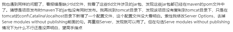 在网上看了很多,都是说缺少jstl和standard的jar包,要么就是让解压standard.jar包,把.tld文件放在WEB/INF下。