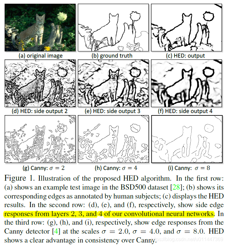 本文提出一种新的边缘检测算法HED(holistically-nested edge detection),有两个特点: