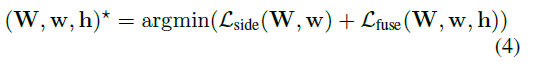 定义ℓside为图像层级的side-output层的loss方程。在我们的图像端到端的训练中,使用训练图像X的所有像素和二值图gt计算loss方程。