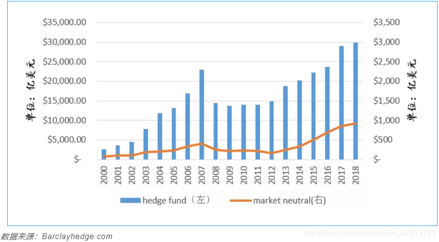 另据巴克莱的统计,市场中性类策略(即主要指股票Alpha策略)至2018年的整体规模约为1000亿美元。