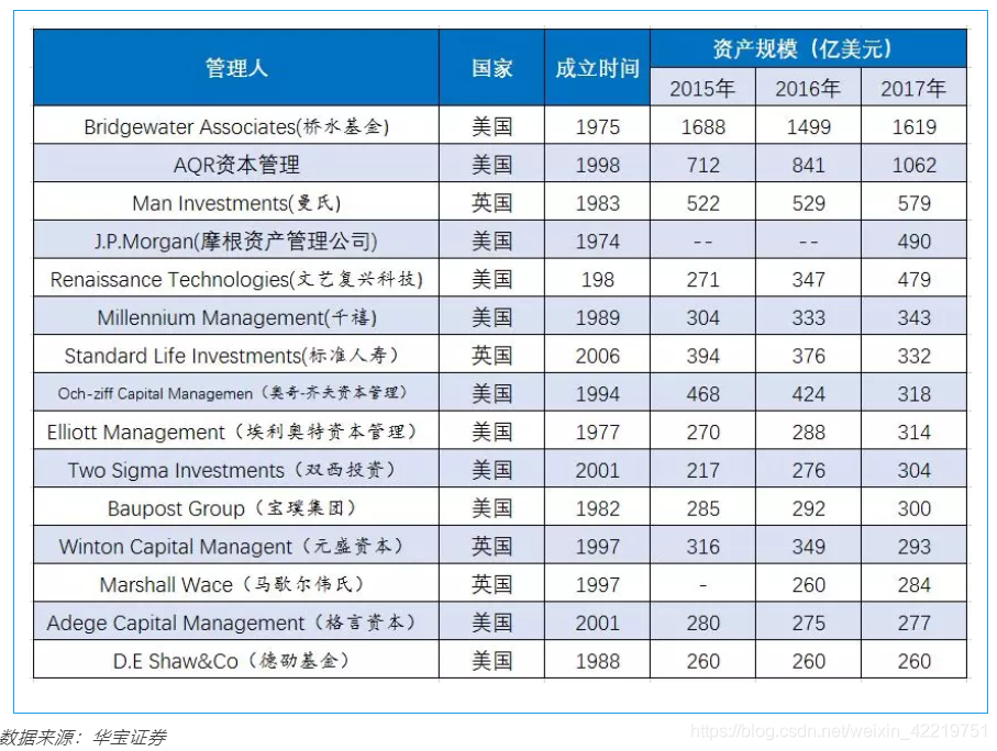 目前顶级的量化对冲基金管理人主要集中在美国和英国。