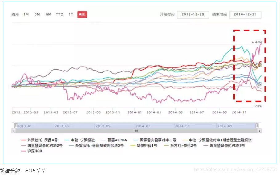 至此,股票量化对冲策略凭借较低的波动性,亦吸引了一部分客户,主要是风险偏好较低的高净值客户。整体上,2010年至2013年,股票市场缺乏投资机会,股票量化对冲策略的推出,迎合了一些客户的需求。但同时,该期间整个国内市场处于非标业务发展的黄金时期,大量的信托计划以年化10%左右的收益进行“保本保收”,抢占了绝大多数个人及机构投资者的固收配置需求。阿尔法策略提供的回报并不足以支持该产品进入热销。