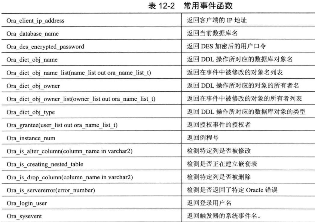 AFTER DDL ON SCHEMA //在用户执行DDL语句的时候触发,但是我使用的时候不好使,暂时未解决