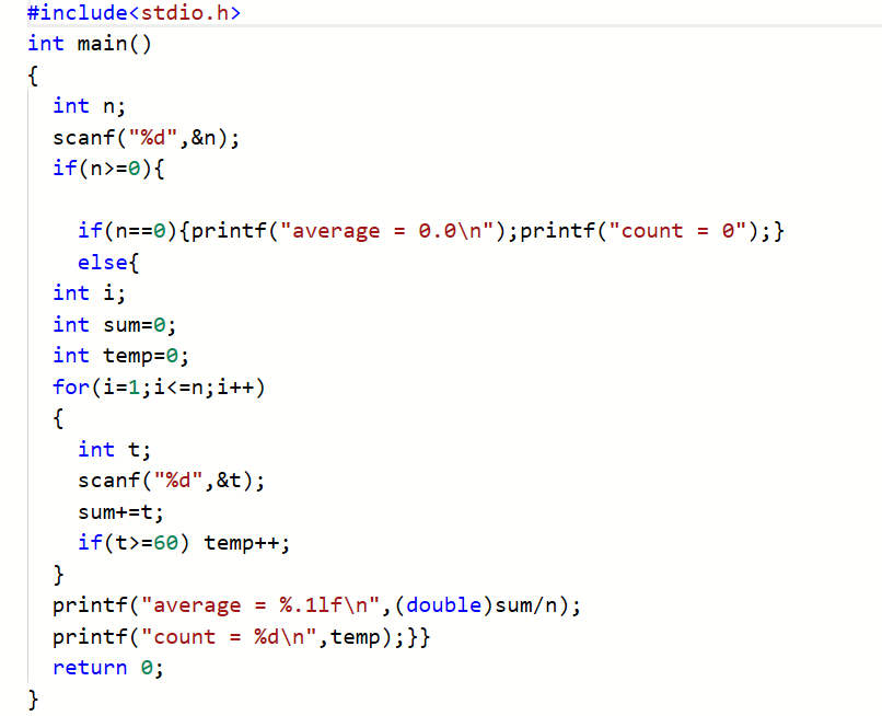 1.2题要求编写程序,计算学生们的平均成绩,并统计及格(成绩不低于60分)的人数。题目保证输入与输出均在整型范围内。