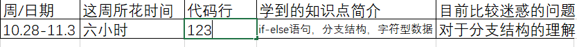 | 我在这个课程的目标是 | 掌握好If-else语句,分支结构,字符型数据 |