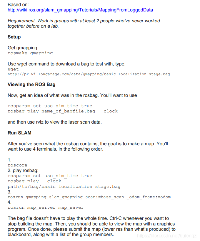 参考网站:http://wiki.ros.org/slam_gmapping/Tutorials/MappingFromLoggedData