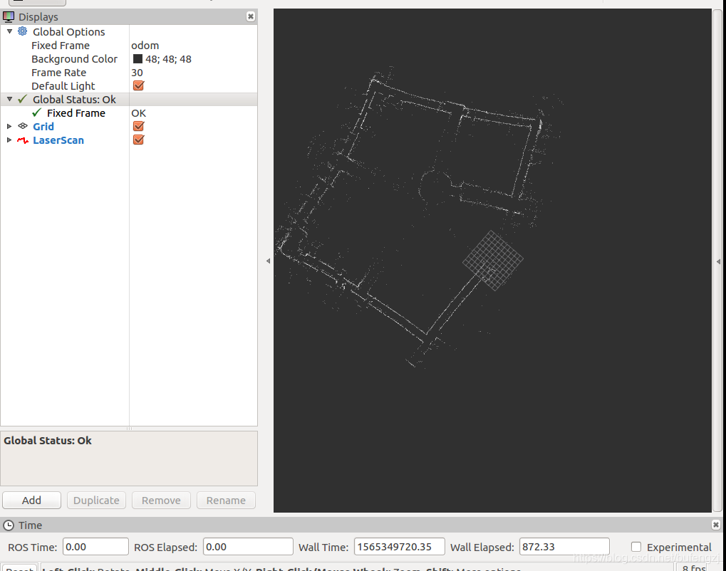 这时候想再rviz里看看,记得要在左上角Global Options里面设置/odom为fixed的: