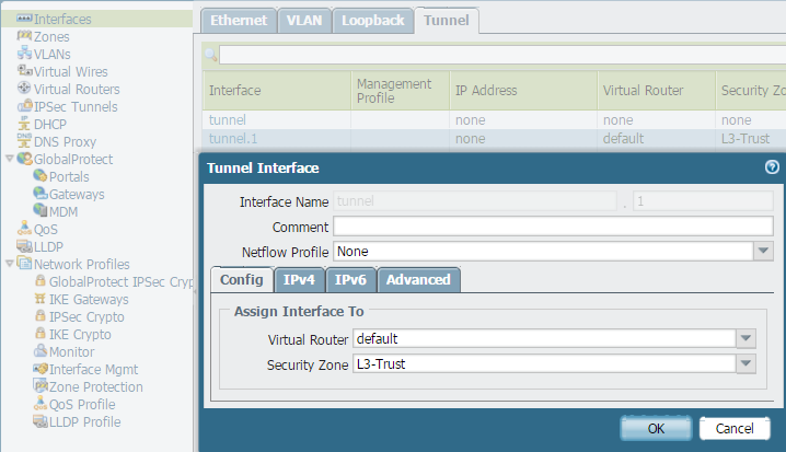 - 传出通信正在进入隧道 — 对于源,请使用明文区域。对于目标,请使用隧道接口区域。