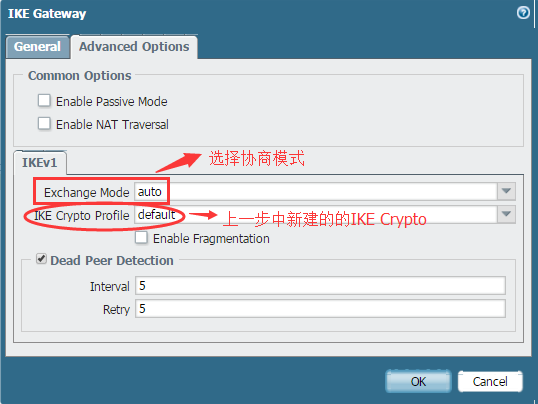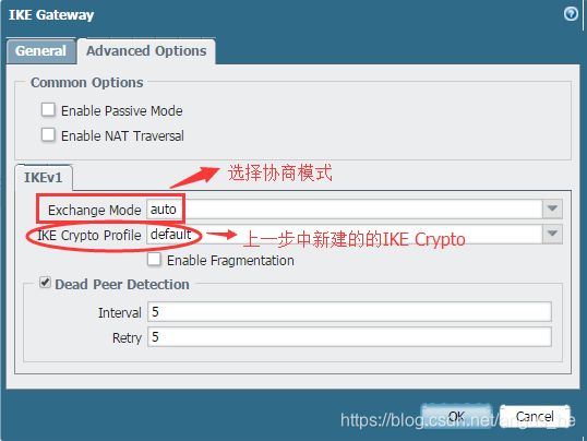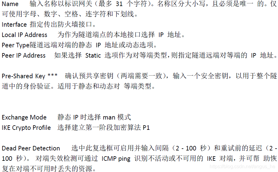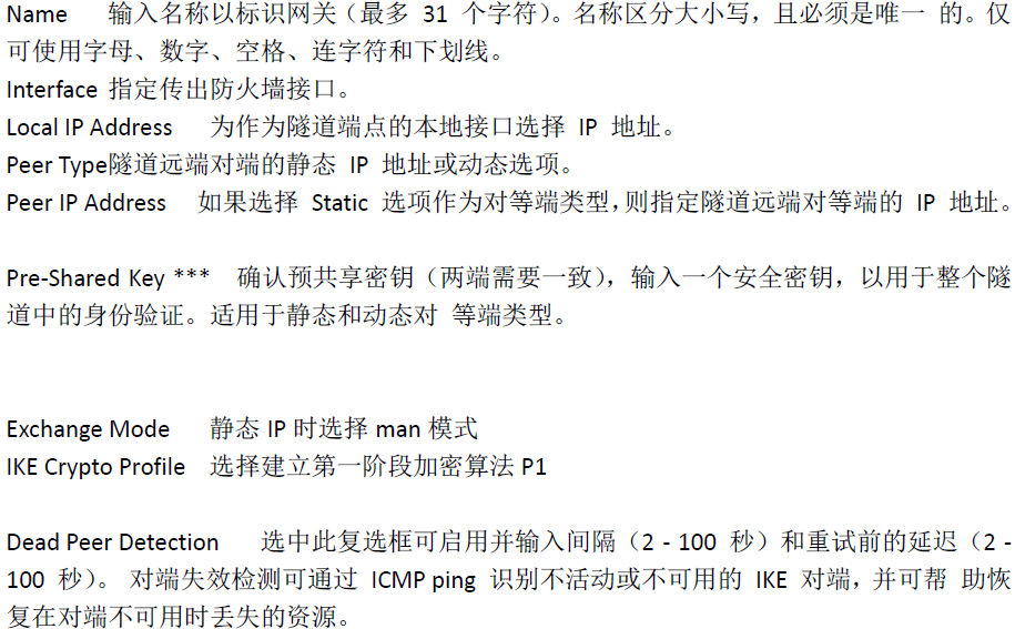 1-2、配置IKE gateway,在network>network profiles>IKE gateway 新建 IKEgateway