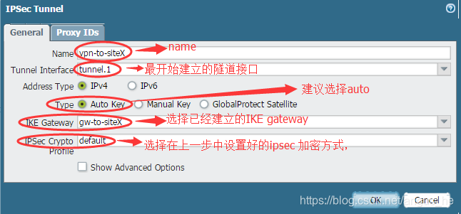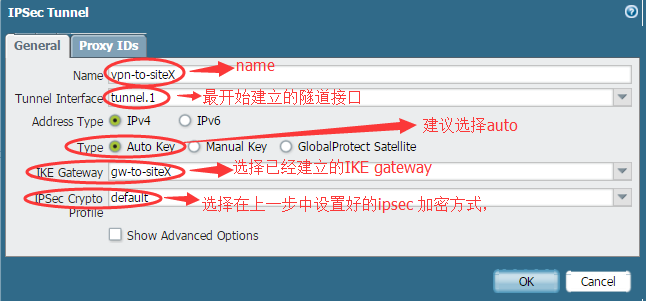 - 基于策略的配置:需要配置隧道的代理 ID。如果需要多个阶段 2 隧道,则在每个隧道上配置不同的代理 ID。
