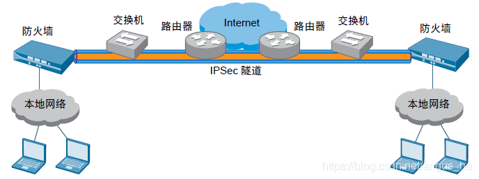 对于防火墙之间的 IPSec 连接,将整个 IP 数据包(标头和负载)嵌入另一个 IP 负载中,并且