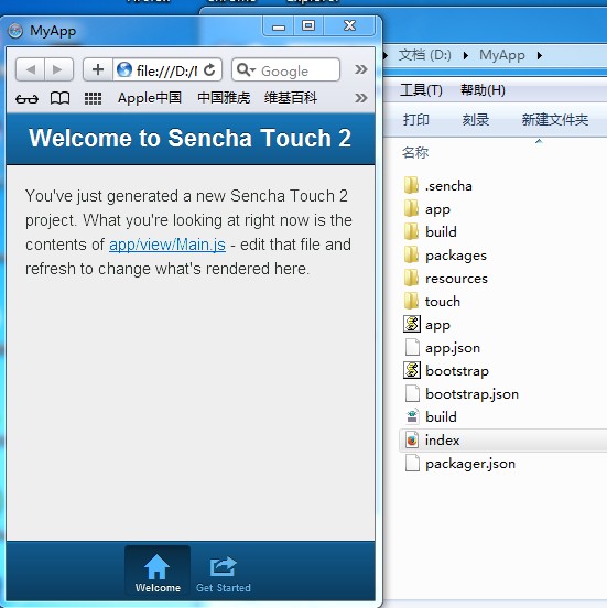 一切OK,这里的MyApp目录就是Touch的基本目录结构,其实里面面有些是没有用的,但如何还要使用其他