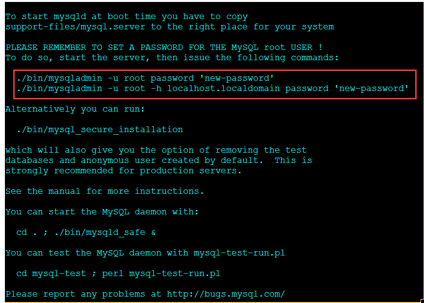 MySQL启动之后再执行如下命令更改密码: